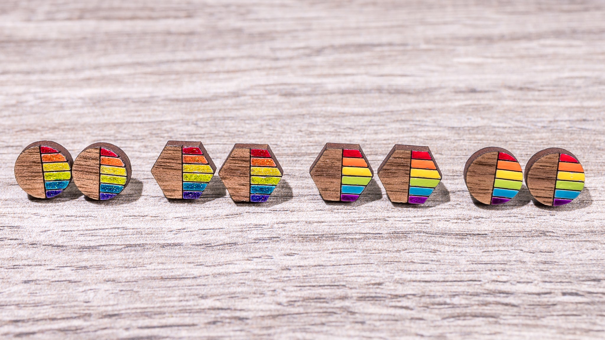 Assorted jewelry and accessories including wooden laser cut earrings, laser cut earrings,...
